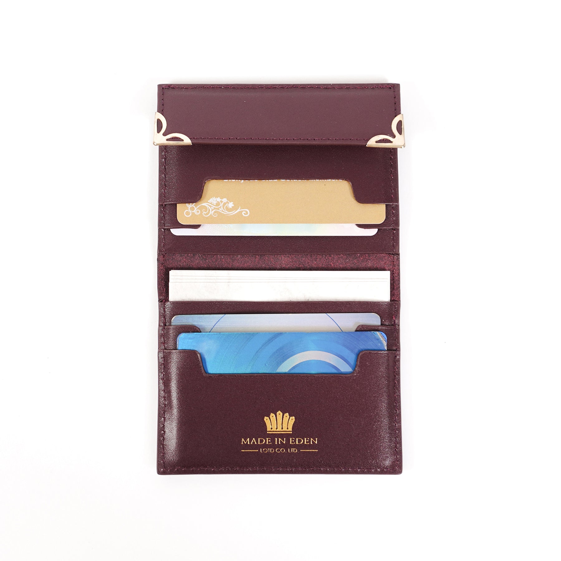 The wallet features reinforced corners with metal fittings to prevent wear and tear and maintain its aesthetic appeal. The flap-style opening provides secure protection for your belongings without the need for zippers or buttons. With high-density, durable, and dirt-resistant leather, the wallet allows for easy access to cards while providing the flexibility you desire.
